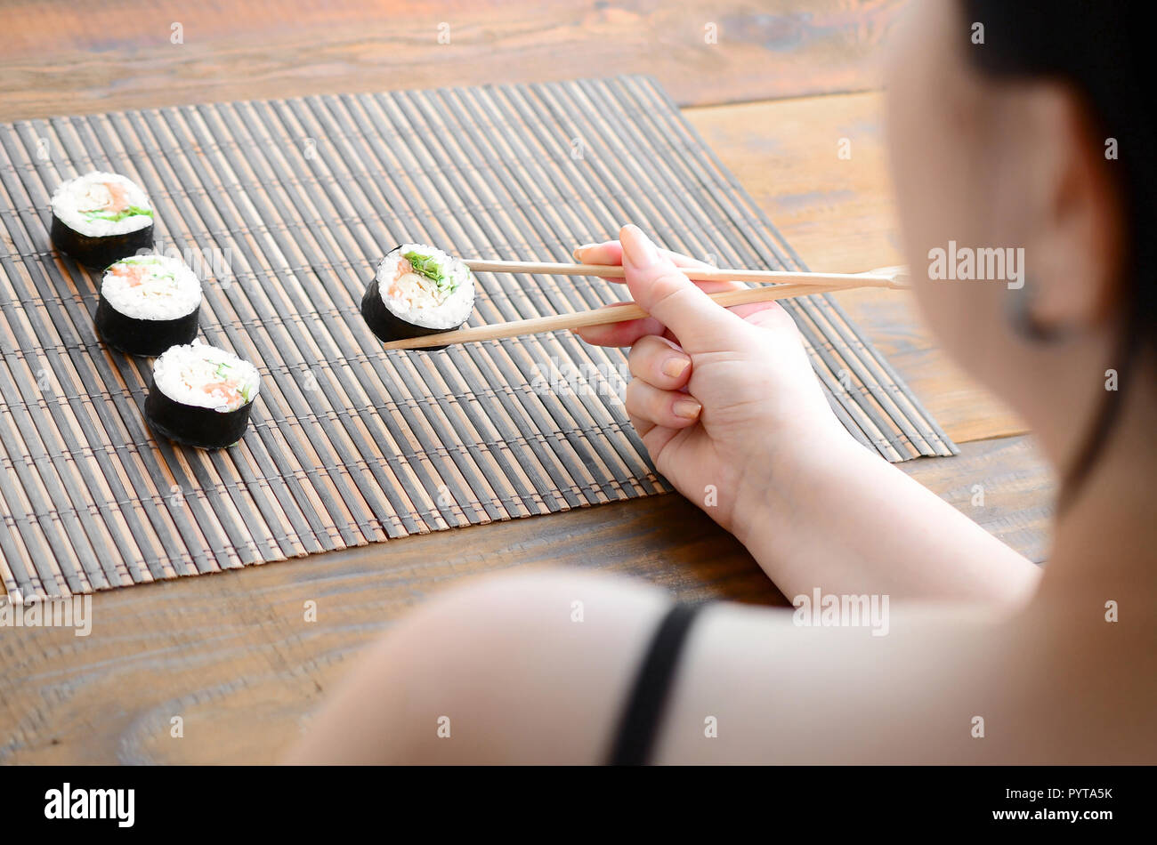 Woman Eating Maki Sushi Stock Photos Woman Eating Maki Sushi