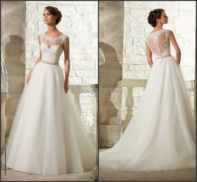 See Through Lace Top Modern A Line Wedding Dress