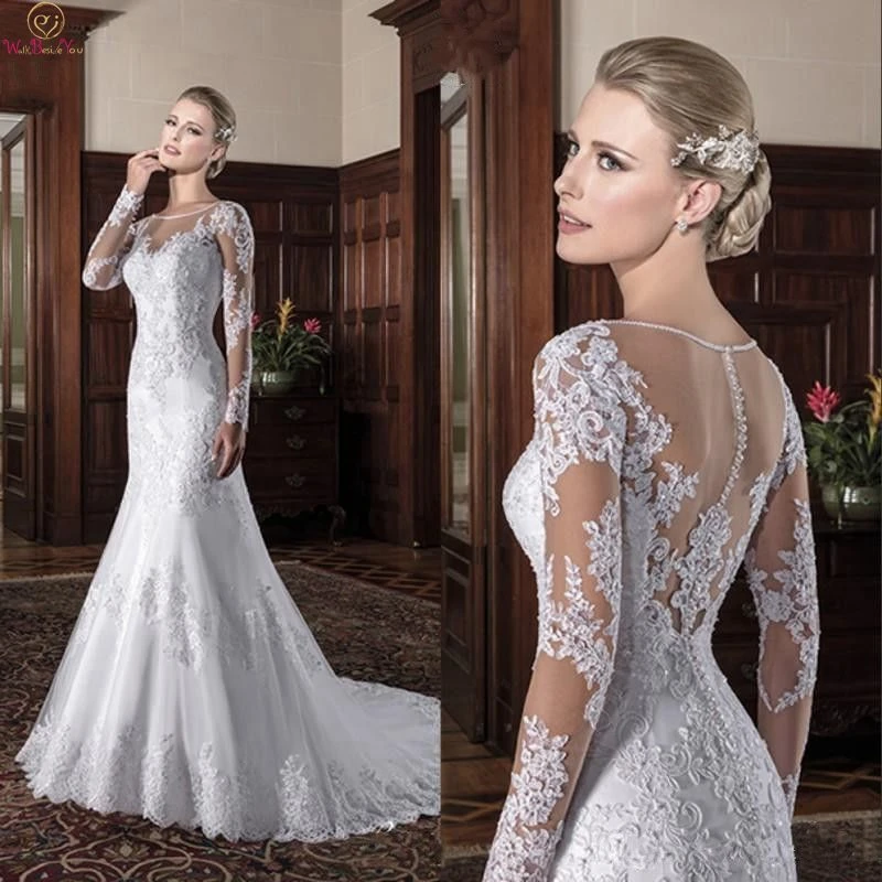 New Modest Design Lace Top Wedding Dresses Long Sleeves Best