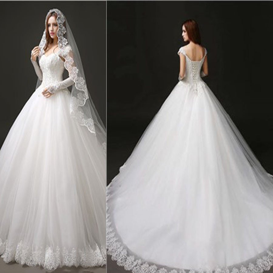 Classic Style Cap Sleeve Lace Top Ball Gown Lace Up Wedding Dresses Wd0157