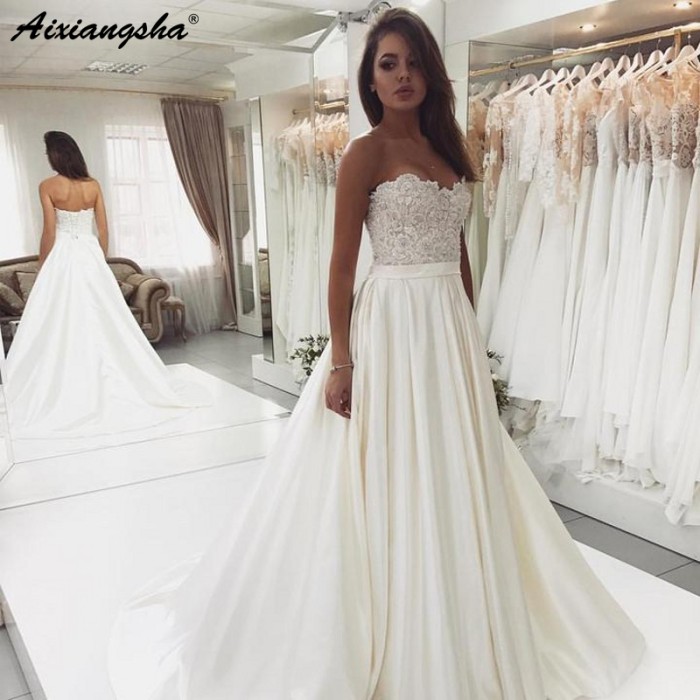 Us 102 6 5 Off Elegant Sweetheart Backless Lace Top Wedding Dress Satin Ivory Wedding Gowns Vestido De Noiva Bride Dress 2019 In Wedding Dresses