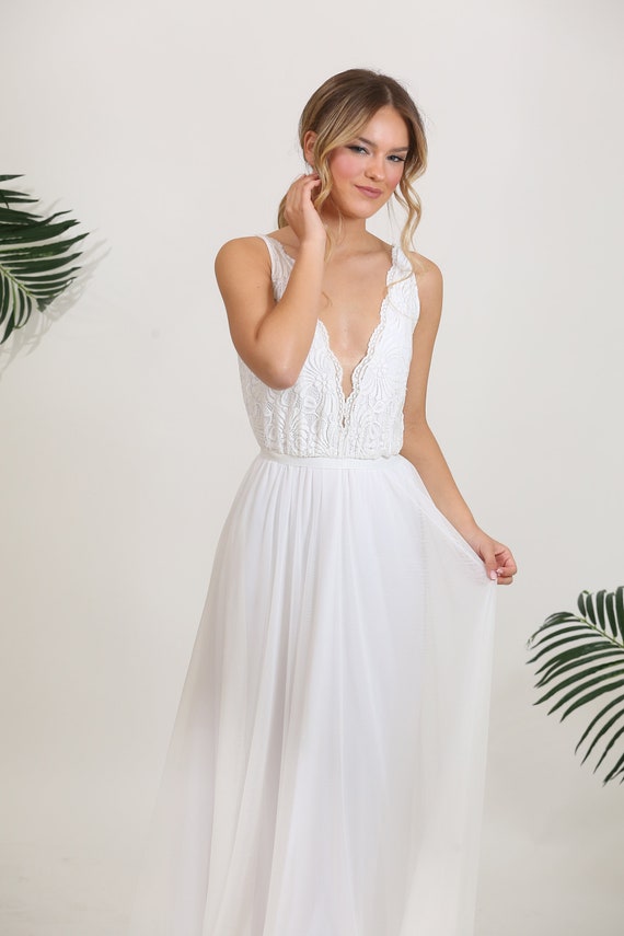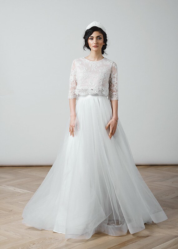 Crop Top Wedding Dress Tulle Dress Lace Top Tulle Skirt Simple Dress Boho Dress