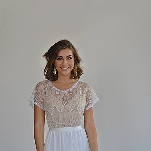 Amazon Com Bohemian Lace Top Wedding Dress Wedding Lace