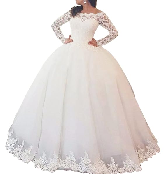Details About Off Shoulder Bridal Dresses Elegant Wedding Ball Gowns Lace Top Long Sleeve 2019