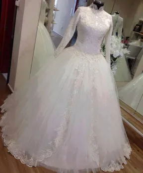 Fa40 Jubah De Mariage Ball Gown Wedding Dresses Lace Appliqued Lengan Panjang Muslim Gaun Pengantin Putri Gaun Pengantin Islamic Buy Panjang Lengan