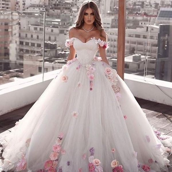 Discount 3d Floral Appliques Ball Gown Wedding Dresses Lace Top Quality Beaded Sweetheart Sweep Train Gothic Wedding Dress Civil Vestido De 2019