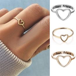 Best Friend Heart Ring Silver Gold Engrave Letters Friendship Love Ring Fashion Jewelry For Women Sisters Gift Drop Shipping