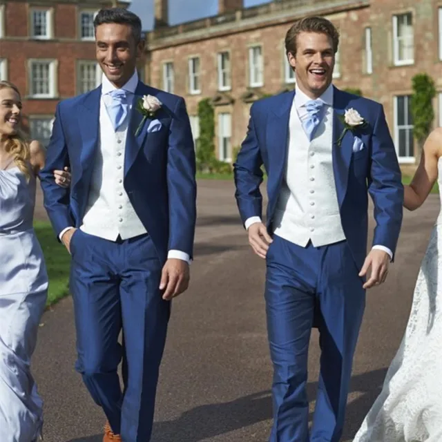 Veste Gilet Pantalon Mariage Marié Slim Fit Bleu Royal Hommes