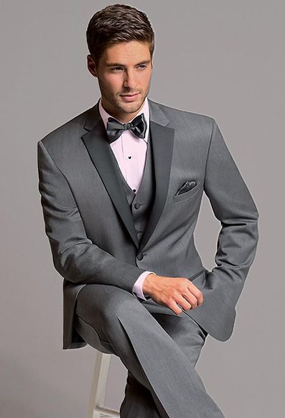 Trendy Design Gray Groom Tuxedos Groomsmen Notch Lapel Best Man Suits Mens Wedding Blazer Suits Jacket Pants Vest Tie No 666 Designer Suits For Men
