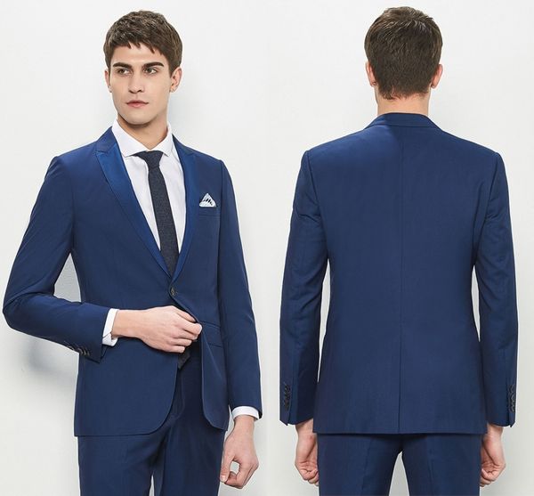 Newest Slim Fit Groom Tuxedos Dark Blue Best Man Suit Notch Lapel Groomsman Men Wedding Suits Bridegroomjacket Pants Mens Tuxedo Suits Mens Wedding