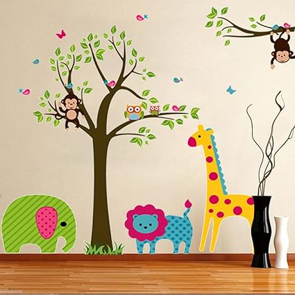 Amazon Com Ayutthaya Shop Elephant Lion Giraffe Cartoon Wall