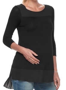 Kohls Aglow Womens Maternity Black Mixed Media Georgette Trim Top